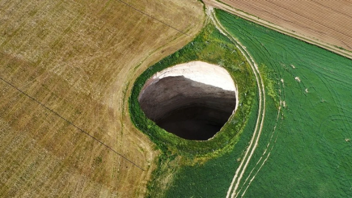 Aksaray'ın Sultanhanı ilçesinde pancar tarlasında yaklaşık 2 metre çapında ve 15 metre derinliğinde olduğu tahmin edilen obruk meydana geldi.