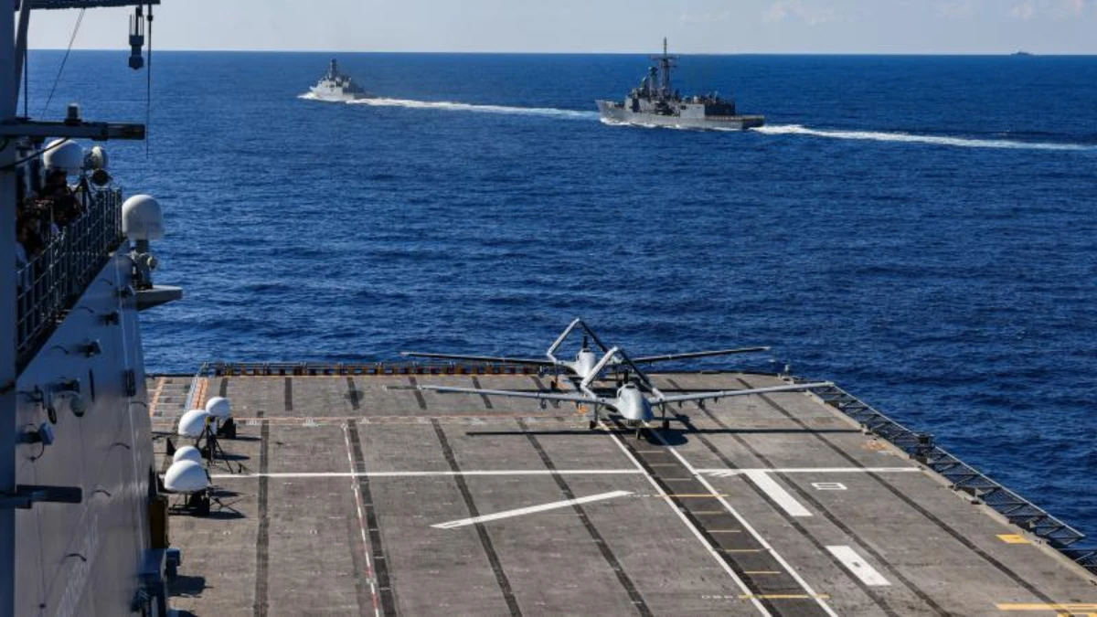 Tatbikat kapsamında Türkiye'nin Mavi Vatan'daki gücünün simgesi haline gelen TCG Anadolu gemisinden art arda iki Bayraktar TB3 SİHA havalanarak tarihi bir göreve imza attı.