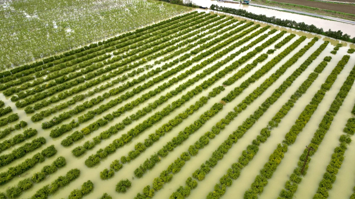 Mersin'in Tarsus ilçesinde dün etkili olan sağanak nedeniyle su altında kalan tarım arazileri dronla görüntülendi.