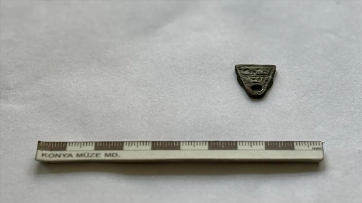 "Selçuklu dönemine ait olduğunu düşündüğümüz konut yapısında çalışma yaptık. Selçuklu dönemine ait bir yeşil sırlı hokka bulduk. Yanında bronz muska çıktı. Selçuklu dönemine ait olduğunu düşünüyoruz. Şu anda restorasyon çalışmaları devam ediyor. İki yüzünde ters bir şekilde yazılar var. Kolye muska şeklinde. Benzerlerine Anadolu'da sık rastlanmasa da Orta Asya'da var. Özellikle askerler ve yolcular tarafından takıldığı biliniyor. Restorasyon sonrası yazıların okunmasıyla beraber daha net yorum yapabileceğiz. Bronzdan yapılan üçgen şeklinde iki yüzünde iki sıra yazı bulunan bir kolye ucu, tılsım."
