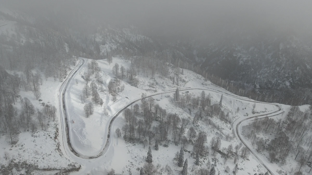Yaklaşık 1850 rakımlı ve kar kalınlığının yer yer 1 metreyi bulduğu bölge, dron ile görüntülendi.