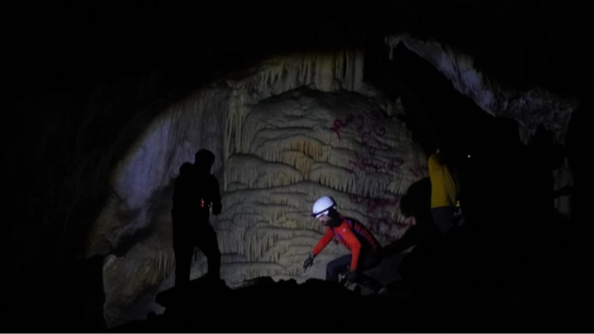 AA muhabiri bir dağcılık rehberi eşliğinde, mağarada yer alan doğal oluşumları görüntüledi.