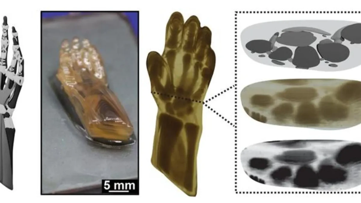 Araştırma ekibi, CRAFT teknolojisini kullanarak kemik, bağ, tendon ve kas dokularını tek bir baskıda taklit eden gerçekçi bir insan eli kopyası üretmeyi başardı.