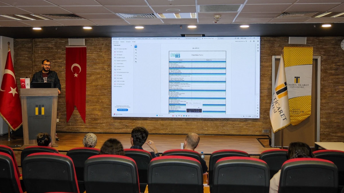 Gençlik ve Spor Bakanlığı’nın yürüttüğü Üniversite Öğrenci Toplulukları İş Birliği ve Destek Programı (ÜNİDES) kapsamında öğrencilere yönelik bilgilendirme toplantısı, İstanbul Ticaret Üniversitesi Sütlüce Sâdâbâd Kampüsü’nde düzenlendi. Toplantıya, Gaziosmanpaşa Gençlik Merkezi Müdürü Emine Akbaş, Gençlik Çalışan Liderleri İlyas Tanrıverdi, Mustafa Ünlü, Meral Değercan ve Rümeysa Altunboğa’nın yanı sıra, Sağlık, Kültür ve Spor Daire Başkanı Kaan Fidan, öğrenciler ve öğrenci topluluk yöneticileri katıldı. Öğrenci topluluklarının ÜNİDES desteğinden nasıl yararlanabileceği, proje yazım süreci ve bütçe planlamasına ilişkin detaylar, toplantıda paylaşıldı.