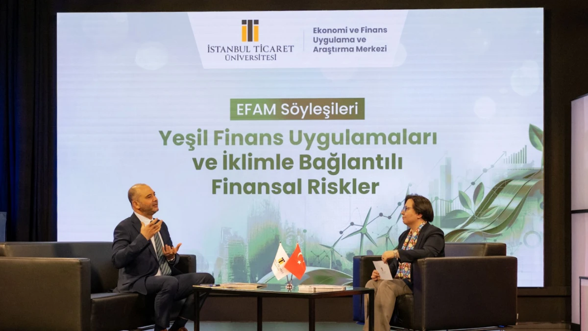 İstanbul Ticaret Üniversitesi Ekonomi ve Finans Uygulama ve Araştırma Merkezi (EFAM) tarafından düzenlenen EFAM Söyleşileri’nin yeni programında, ‘Yeşil Finans Uygulamaları ve İklimle Bağlantılı Finansal Riskler’ başlığı ele alındı. Programın moderatörlüğünü EFAM Müdürü Prof. Dr. Elçin Aykaç Alp üstlenirken, söyleşinin konuşmacısı Adil Katılım Bankası Genel Müdür Yardımcısı Dr. İlker Koç oldu. Söyleşide, iklim krizi karşısında ekonomik sistemin dönüşüm zorunluluğu, bu süreçte finans sektörüne düşen rol ve mevcut riskler örneklerle değerlendirildi.
