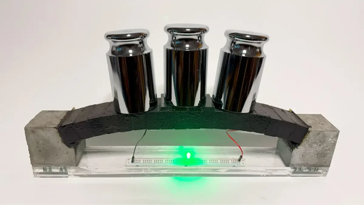 Masic, çalışmayı Roma inşaatlarına benzetiyor ve antik Romalıların beton inşaatındaki ilerlemelerini hatırlatıyor; malzeme bilimi ile mimari vizyonu birleştirmenin, ec3 gibi çok işlevli betonlarla yeni bir mimari devrimin kapısını aralayabileceğini vurguluyor. Ekip, potansiyeli göstermek için küçük bir ec3 kemeri inşa etti; bu kemer bir LED’e güç verirken aynı zamanda ağırlığı da destekledi. Stres altındayken ışığın titremesi, gelecekte binaların kendi sağlıklarını gerçek zamanlı izlemelerine yardımcı olabilecek akıllı izleme uygulamalarını akla getiriyor.