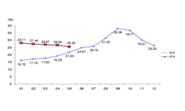 Bina inşaat maliyet endeksi yıllık değişim oranı, mayıs 2019 (2015=100)