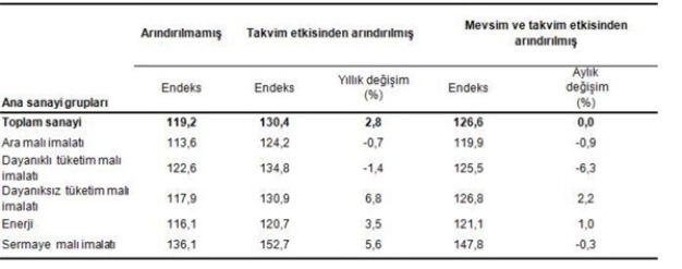 Tabloda da görüleceği üzere bazı sektörler önemli sinyaller veriyor. Örneğin dayanıklı tüketim malı imalatı yıllık bazda yüzde 1.4 azalırken aylık bazda bir önceki aya göre yüzde 6.3 oranında ciddi bir düşüş gösterdi. Ara malı üretiminde yıllık değişim yüzde -0.7, aylık bazda değişimi ise yüzde -0.9’dur.