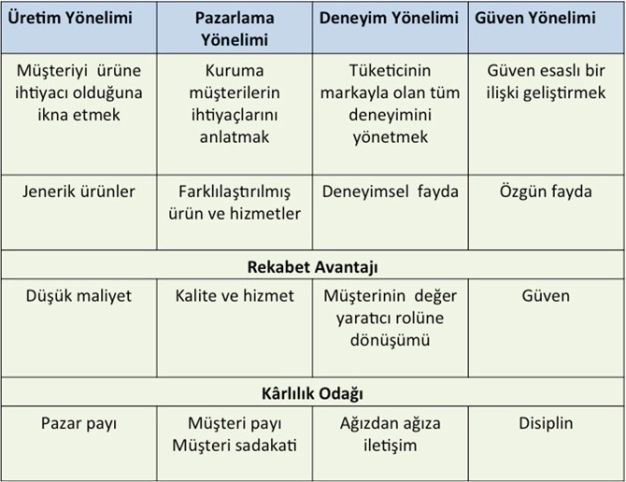 Pazarlama yöneliminde üretimde odak noktasını jenerik ürünler yerine müşterilerin özellik ve beklentilerine göre kişiselleştirilmiş ürünler aldı. Pazarlar gittikçe doymaya başladığından pazar payını artırmak yerine müşteri payını bir başka ifadeyle müşteri cüzdan payını artırmak önemli hale geldi. Yeni pazarlar bulmak mümkün olmadığında eldeki müşterilerin sadakatini artırmak ve bu müşterilere tekrarlanan satışlar yapmak, müşteri cüzdan payını artırmanın tek yolu oldu. O yıllarda müşteri şikayet kutuları hayatımıza girmeye başladı. Başlangıçta bir hata varsa müşteriden kaynaklanıyordur anlayışıyla müşteriler şikayet kutusuna mektup bırakmaya korkarken zamanla seslerini yükseltmeye başladılar. Zamanla işletmeler 444’lü haklı müşteri hatlarını devreye aldı.