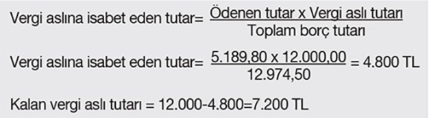 Ödenen tutardan vergi aslına isabet eden tutar ise aşağıdaki formüle göre hesaplanacaktır.